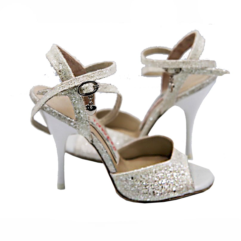 Size: 35-41 Heel: 13-15-16 Color: White glitter. Also available in other glitter colors.